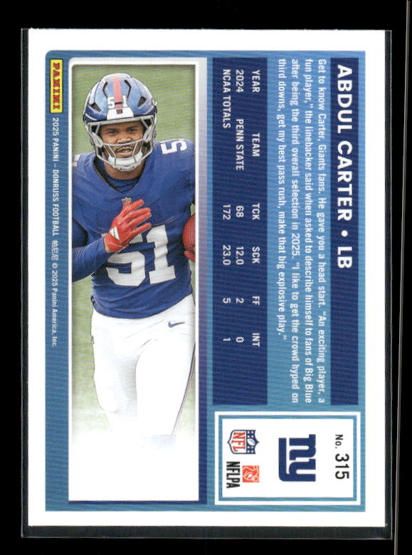Abdul Carter - 2025 Donruss Football - Rated Rookie