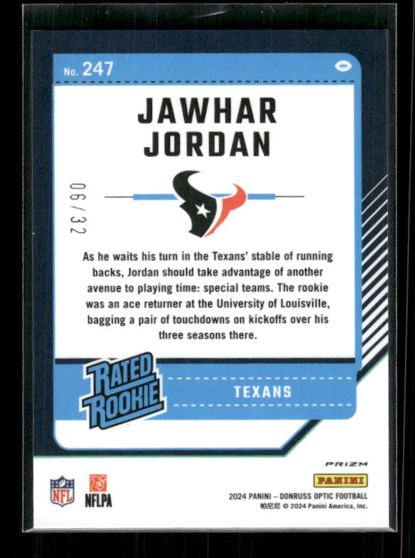 Jawhar Jordan - 2024 Donruss Optic - Team Logo /32 - Rated Rookie