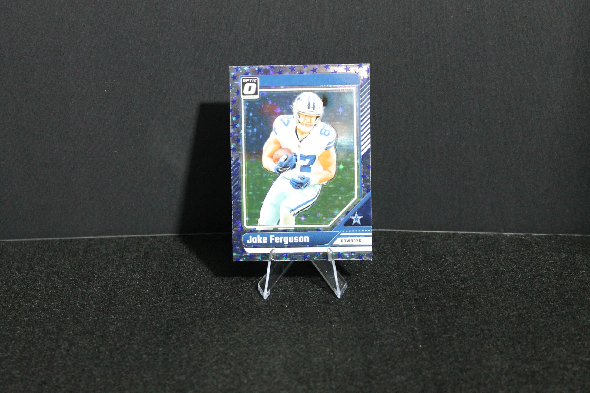 The Jake Ferguson 2024 Donruss Optic Stars SSP card is a rare short-printed collectible that highlights this emerging tight end’s potential. Featuring vibrant optics and limited availability, this card offers expert collectors a visually striking and valuable addition, ideal for those focused on high-quality, scarce football cards with strong investment appeal.