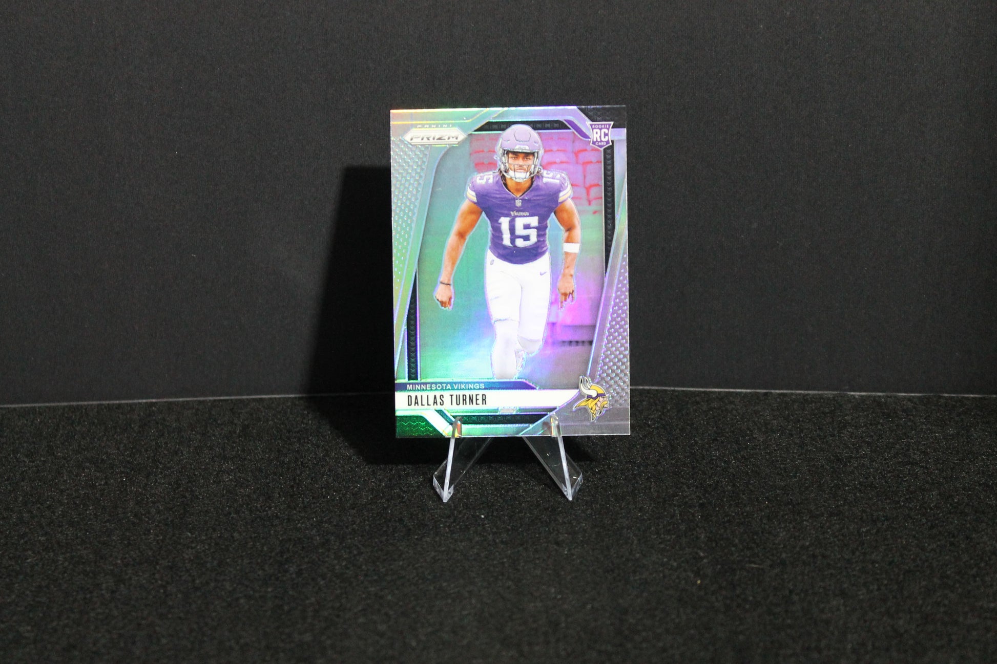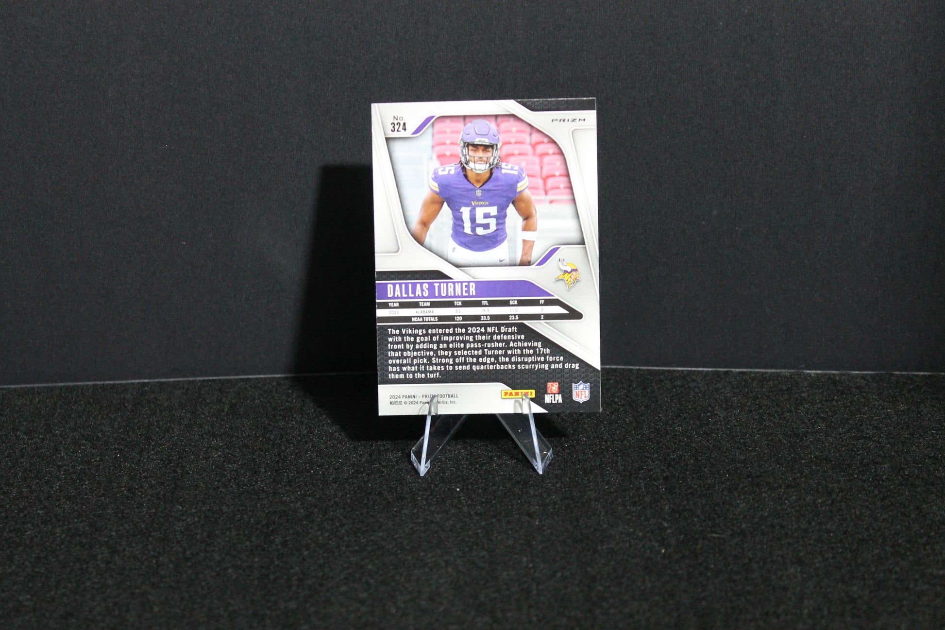 The Dallas Turner 2024 Panini Prizm Silver Prizm Rookie card showcases a promising new talent with a sleek silver prizm finish that highlights the card’s premium quality. Designed for serious collectors, this rookie card combines sharp visuals with potential long-term value, making it an essential addition for those tracking emerging stars in the football world. Its rarity and craftsmanship ensure it stands out in any collection.