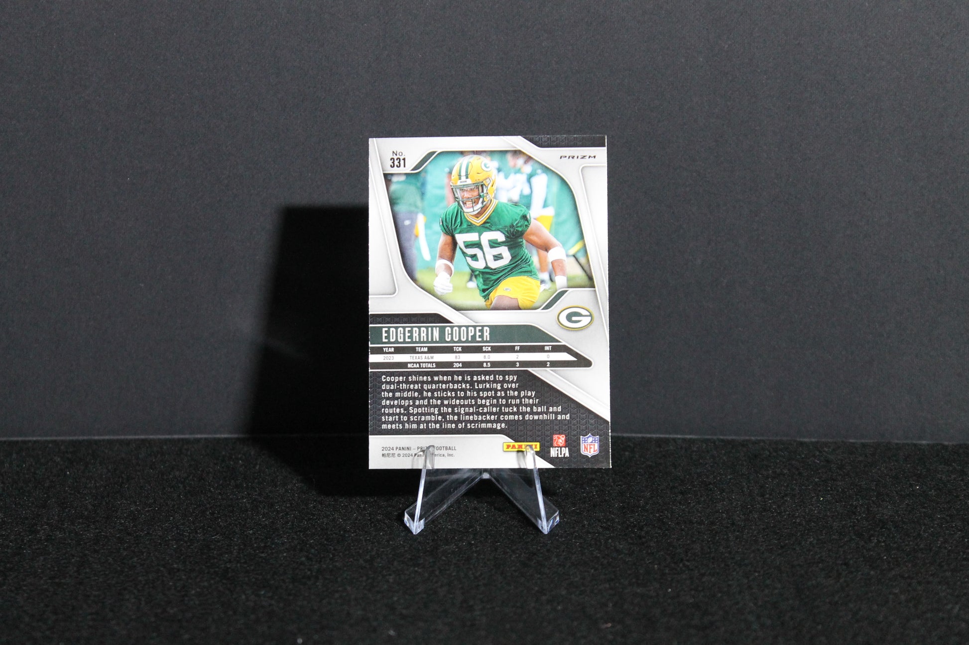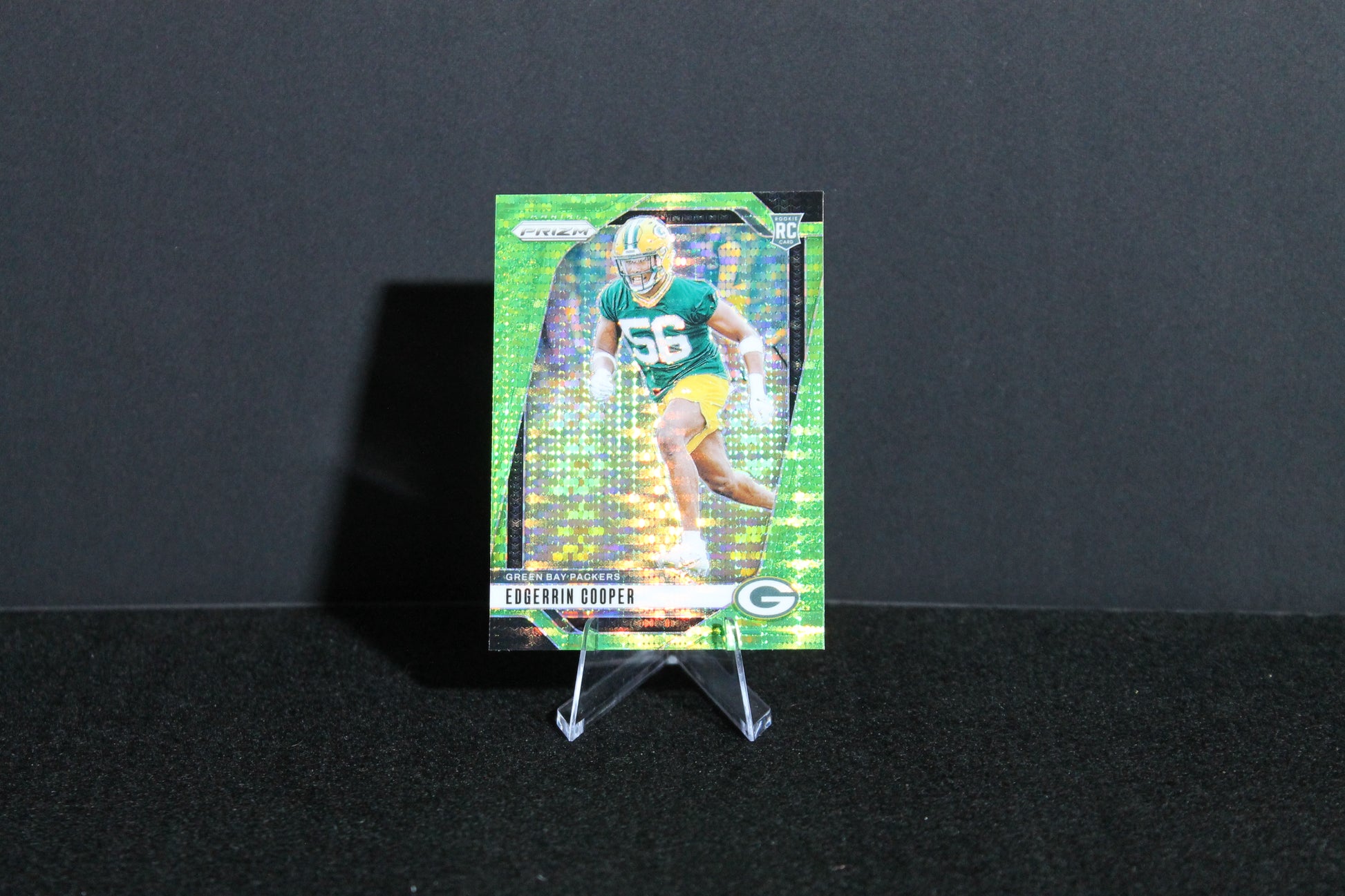 This 2024 Panini Prizm Neon Green Pulsar Rookie card features Edgerrin Cooper, capturing his professional debut with a bold neon green design that commands attention. As part of the sought-after Pulsar subset, this card combines vibrant visuals with rookie status, making it a key piece for collectors focused on emerging talent. Its limited availability and striking presentation enhance its appeal for serious collectors and investors tracking promising athletes.
