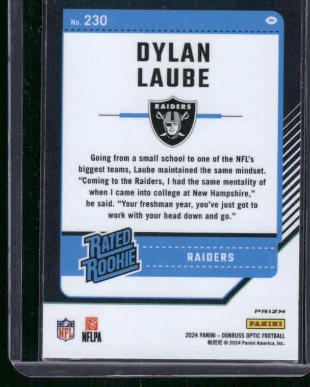The Dylan Laube 2024 Donruss Optic Stars SSP Rookie card is a rare short print that highlights his rookie status with a unique stars design. This card is a sought-after collectible for expert enthusiasts aiming to acquire limited-edition pieces featuring promising football talent, offering both exclusivity and strong visual appeal.
