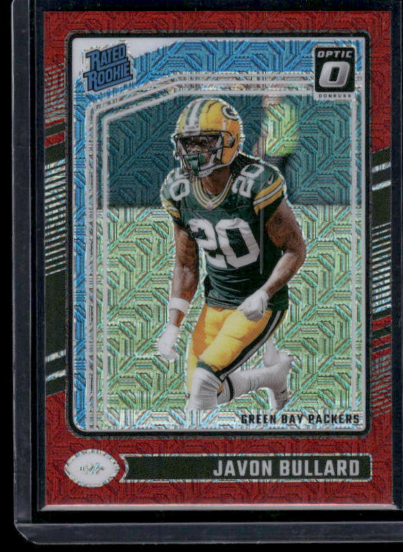 The Javon Bullard 2024 Donruss Optic Red Mojo Rookie card features a striking red mojo design that highlights his rookie status and emerging talent. This card is an essential addition for expert collectors aiming to secure promising football prospects, combining bold aesthetics with potential long-term value.